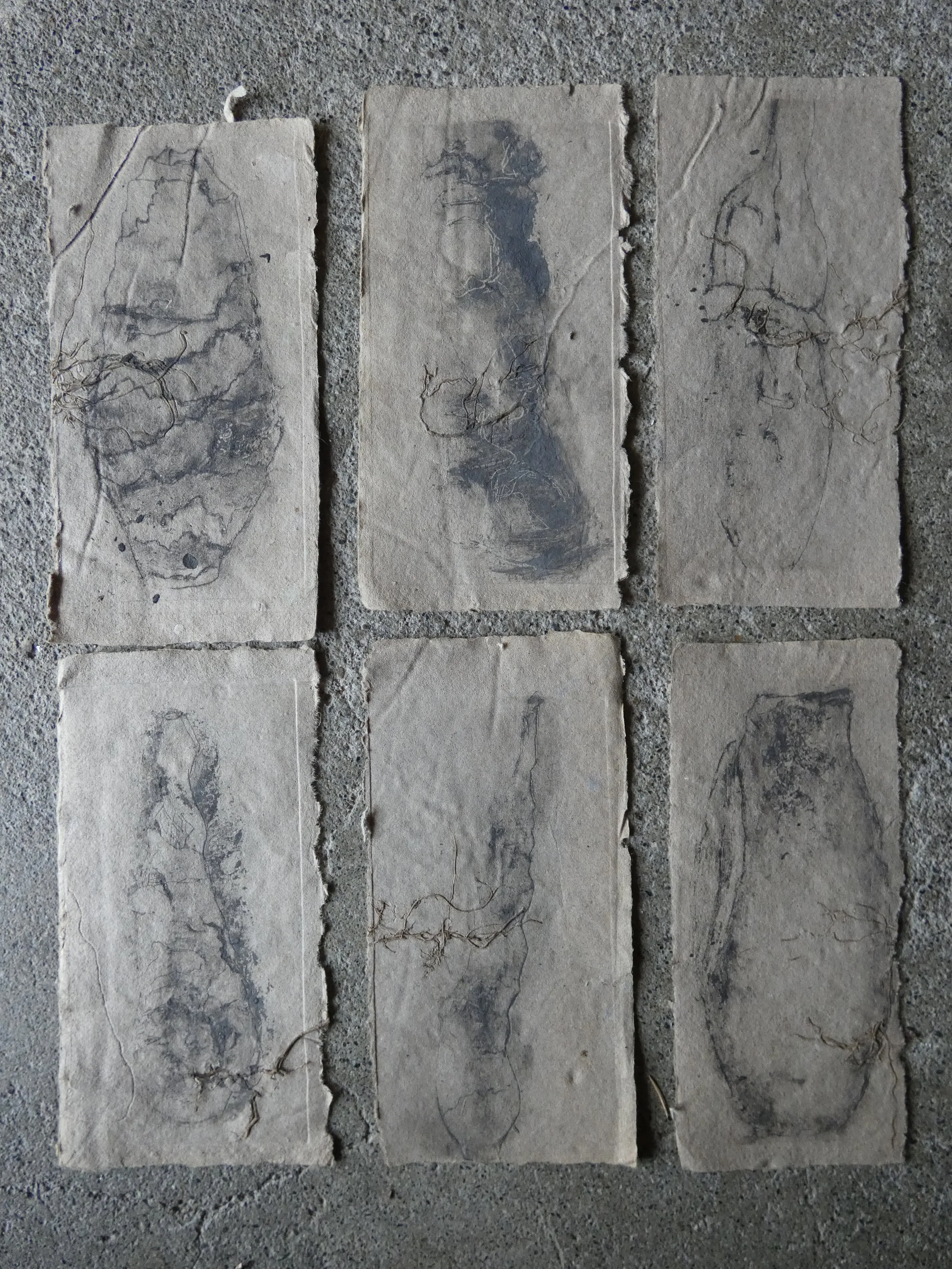 J’explore la pâte à papier recyclé associée à des éléments tombés en désuétude _ organiques, manufacturés, industriels_ dans un souci d’économie de matière première, une évidence, le bon sens paysan.
