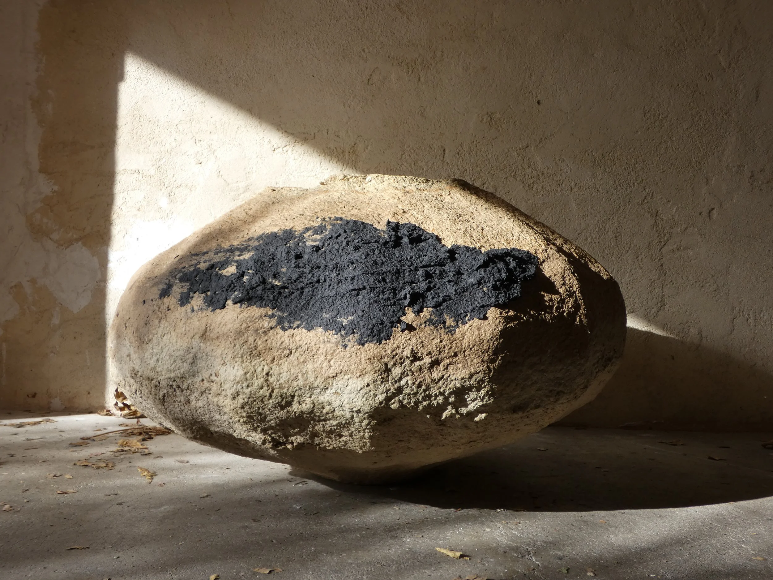 Je cherche et j’adapte des recettes anciennes comme le carton pierre du XVIe, le torchis de papier, des techniques de potiers. Je poursuis des investigations sur sa décomposition en extérieur.