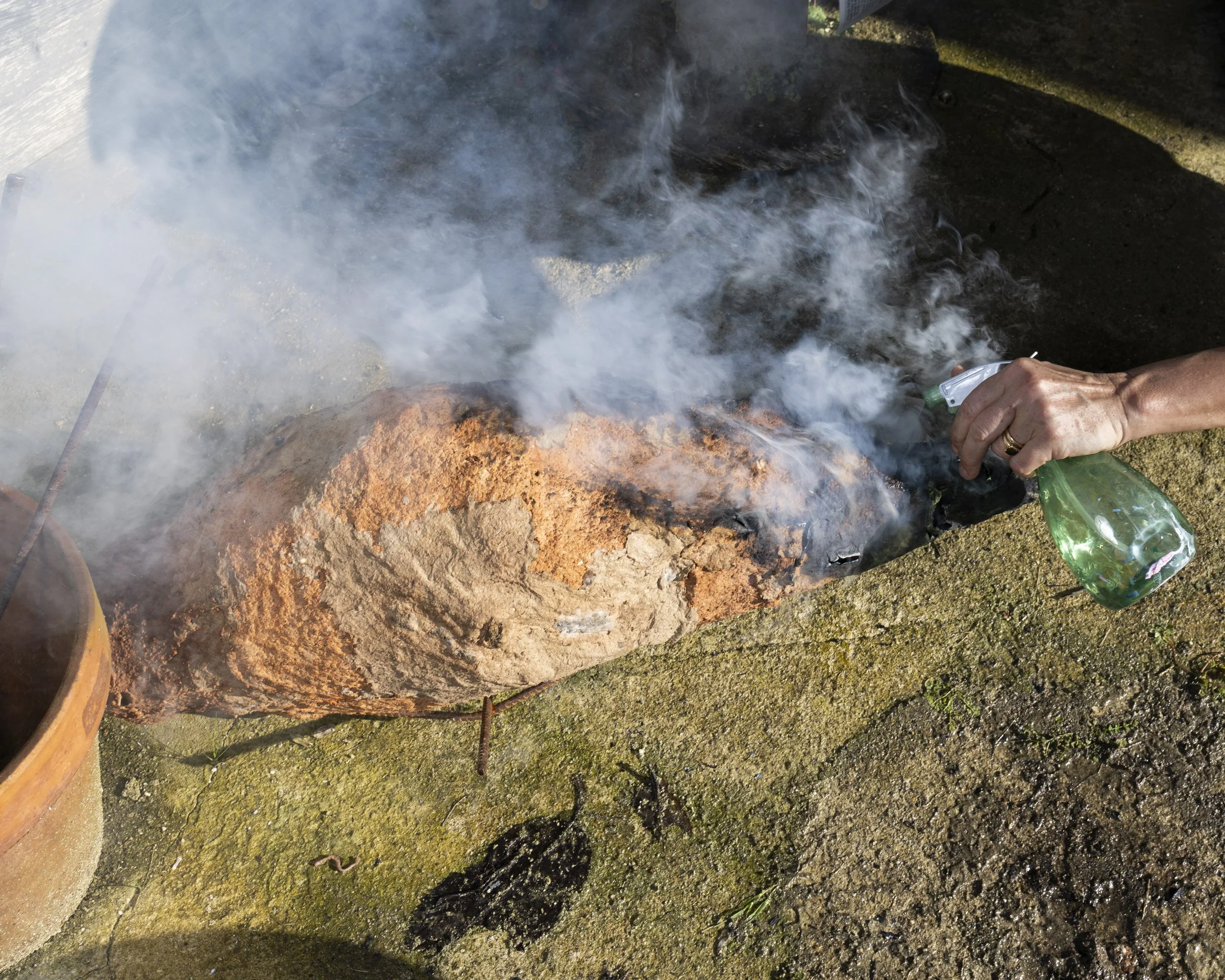 l'Une d'elle est restée In Situ pendant 9 mois pour une expérience d’œuvre compostable et étudier sa transformation en extérieur.